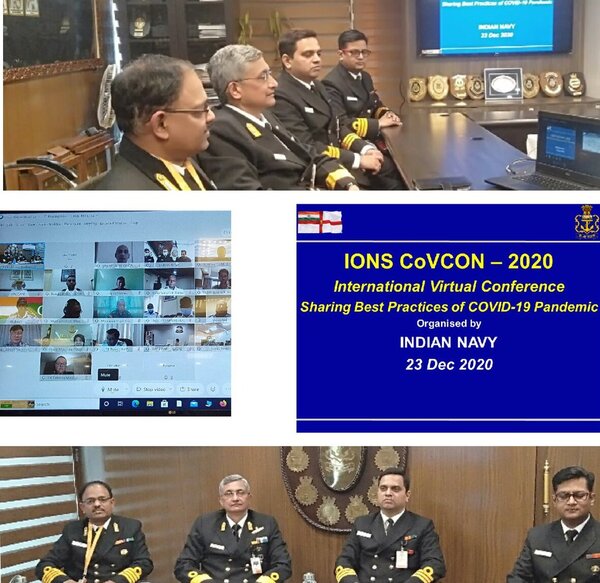 An Indian Ocean Naval Symposium COVID- 19 Workshop through Video Conference for interaction of experts and experience sharing was organised between Indian Navy on 23 December 2020. The aim of the Webinar was to discuss Standard Operating Procedures, Best Practices, issues concerning COVID management and the Way ahead on administering the Corona Vaccine by the participants.