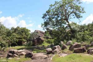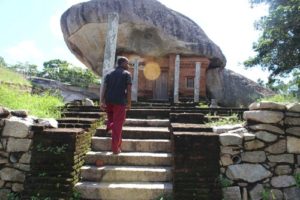 ඒ වෙලාවේ දී ඇතිවූ බහින්බස් වීමෙන් රජතුමා රැගෙන ගිය විළඳ තොගය ගල් පර්වතයක් මත ගොඩගසාදමා ගියාලු. එදා පටන් මේ ස්ථානයට විළඳගොඩ ලෙස නම්කරලා තිබෙනවා. රජතුමා අවසාන වශයෙන් කුමාරයාට කියා ඇත්තේ මේ ප්රදේශයේ වාසය කළාට කමක් නැහැ , පළාතේ තිබෙන වැව් අමුණු වෙහෙර විහාර දියුණු කරන්න කියලා. ඊට පස්සේ තමා මේ පන්සල මුලින් හැදෙන්නට ඇත්තේ. එහි පසුකාලීනව මහරහතන් වහන්සේලා වැඩසිටි ගල්ලෙන් 64ක් තිබෙනවා. නීල මහා යෝධයා රජතුමාගෙන් අර වගේ වරමක් ඉල්ලන්නට ඇත්තේ සාලිය හෝ ඒ ජෝඩුවම මහජනතාව සමඟ හොඳින් සිටි නිසා වෙන්නට පුලුවන්. පසු කාලයේ ඒ අය හදාපු වැව් අමුණු වෙහෙර විහාර තමා මේ හැම තැනකම තිබෙන්නේ.‘‘ යි දයානන්ද මහතා විස්තර කළේ ය.