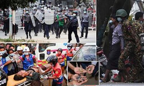 මියන්මාරයේ මැන්ඩාලේ ප්රදේශයේ අද පැවති විරෝධතා වලට පොලීසිය වෙඩිතැබීම නිසා සිවිල් වැසියන් 12 දෙනෙකු මිය ගොස් තිබේ. වෙඩිතැබීම් වලින් තවත් විශාල පිරිසක් තුවාල ලබා තිබේ.මේ වන විට එරට පොලීසිය විසින් සිදු කල වෙඩි තැබීම් වලින් සිවිල් වැසියන් 82 දෙනෙකු මේ වන විට මිය ගොස් තිබේ.