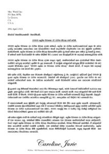 අසාධාරණයට එරෙහිව පෙනී සිටිම ගැන සැබවින්ම ආඩම්බර වන බව සඳහන් කරන ජූරි මහත්මිය විවාහක රූ රැජිණ සංවිධායකවරුන්ගෙන් ඉල්ලා සිටින්නේ, ලෝක විවාහක රූ රැජිණ තේරීමේ ජාත්‍යන්තර තරගය සැලසුම් කළ පරිදිම මෙරටදී පවත්වන ලෙසය.