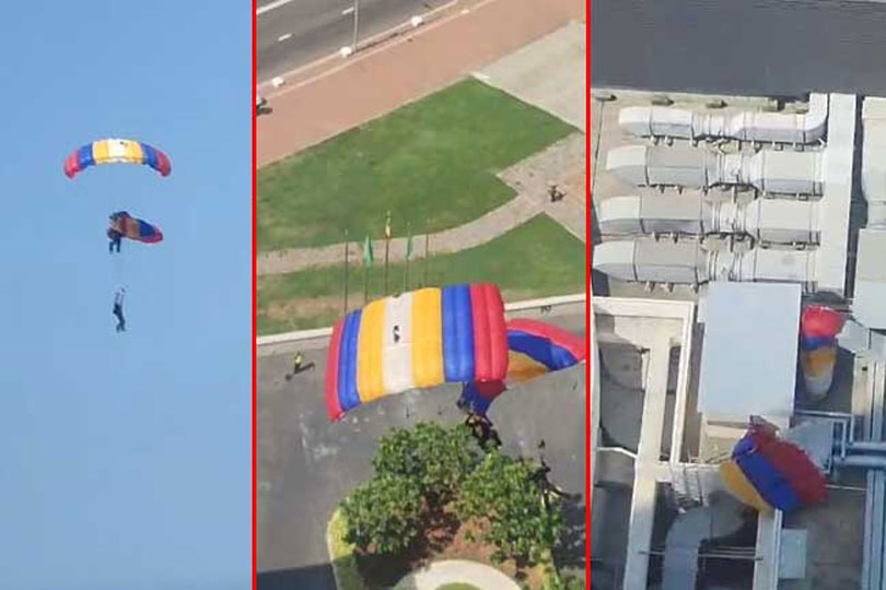 පැරෂුට් පෙරහුරුව අතරතුර ඉහළ අහසේදී පැරෂුට් දෙකක් එකිනෙක පැටලී අනතුර සිදුව ඇති බවත් ශ්‍රී ලංකා ගුවන් හමුදාවේ පැරෂුට් භටයින් දෙදෙනෙක් සහ යුද හමුදාවේ පැරෂුට් භටයින් දෙදෙනෙක් අනතුරට පත්ව ඇති බවත් එම අමාත්‍යංශය කීය.