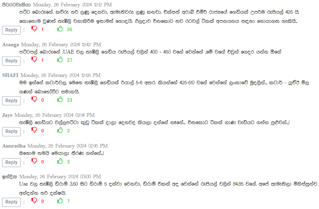 කෙසේ වෙතත් අමාත්යවරයාගේ මෙම ප්රකාශය වෙබ් මාධ්ය හරහා පළ වීමත් සමග එක්සත් අරාබි එමීර් රාජ්යයේ සිටින ශ්රී ලාංකිකයන් ඒ සම්බන්ධව සිය අප්රසාදය පළ කොට ඇති ආකාරය ද දක්නට ලැබුණා.